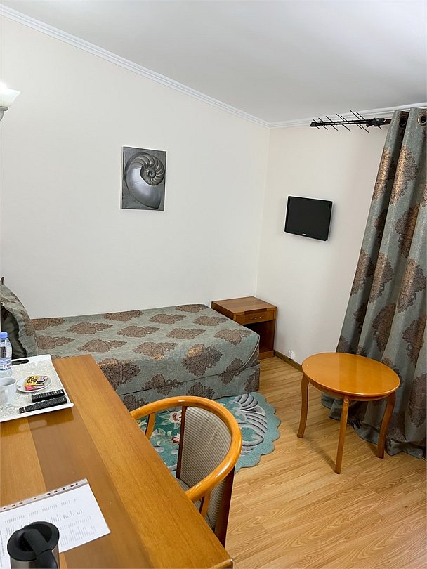 Трехместный, однокомнатный, просторный номер с удобными одной полутороспальной и двумя односпальными кроватями, рабочими столами, двумя креслами и столиком, двумя ЖК-телевизорами и компактным туалетом, который совмещен с умывальником и душем. Идеальный вариант для командировочных поездок, а также останавливающимся в отеле на короткое время.