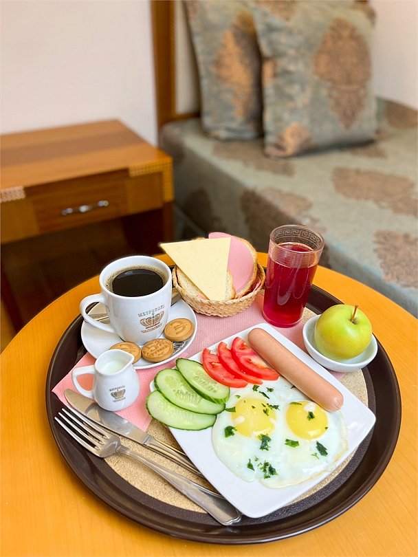 Меню будет указано на информационном стенде внутри Вашего номера.