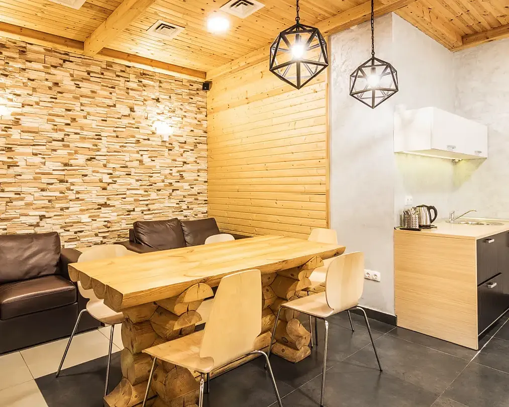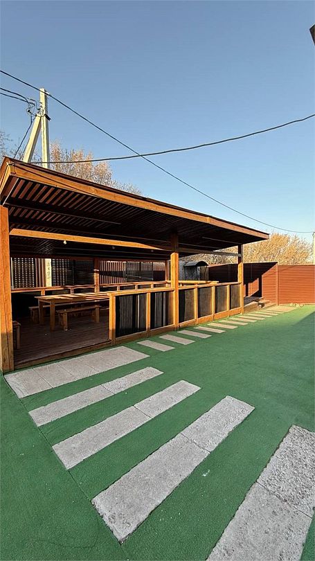 Здесь, в период с одиннадцати утра до девяти вечера, можно насладиться уединением и расслаблением в финской сауне, воспользоваться душевыми и санузлом, а также провести время в уютной гостиной. Для тех, кто желает продолжить торжество или организовать банкет, рядом расположена летняя площадка с просторной беседкой и мангальной зоной.