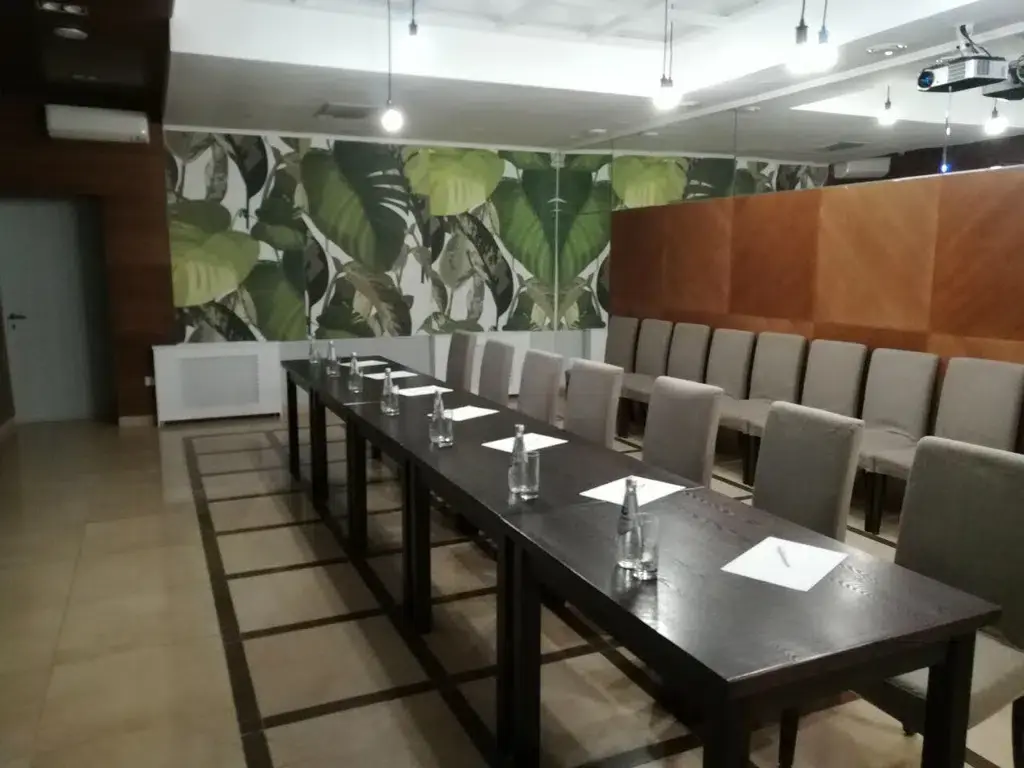 Просторный конференц-зал, идеально подходящий для бизнес-мероприятий, презентаций и тренингов. Гостям предоставляются современные удобства, включая проектор, экран и флипчарт с бумагой и маркерами, а также Wi-Fi на всей территории отеля.