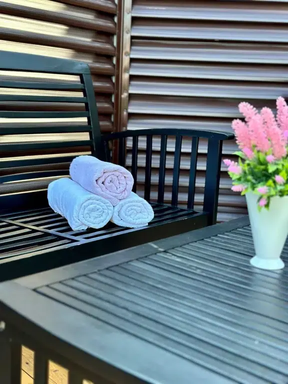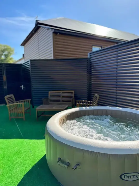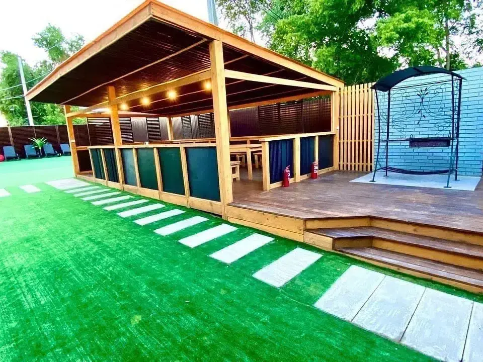 Просторная закрытая территория, оборудованная беседкой, джакузи и мангальной зоной. Здесь можно организовать небольшой банкет на тридцать человек, отпраздновать день рождения или устроить увлекательное детское мероприятие.