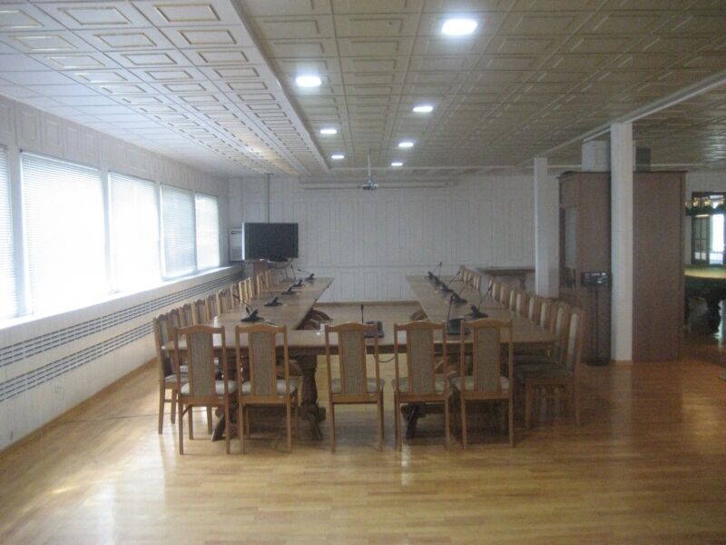 На 2-м этаже –большой и торжественный зал на 150 чел. для проведения совещаний, конференций и торжеств, оснащенный мультимедийным оборудованием и 2-мя экранами для синхронного просмотра.Банкетный зал