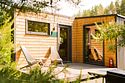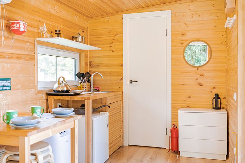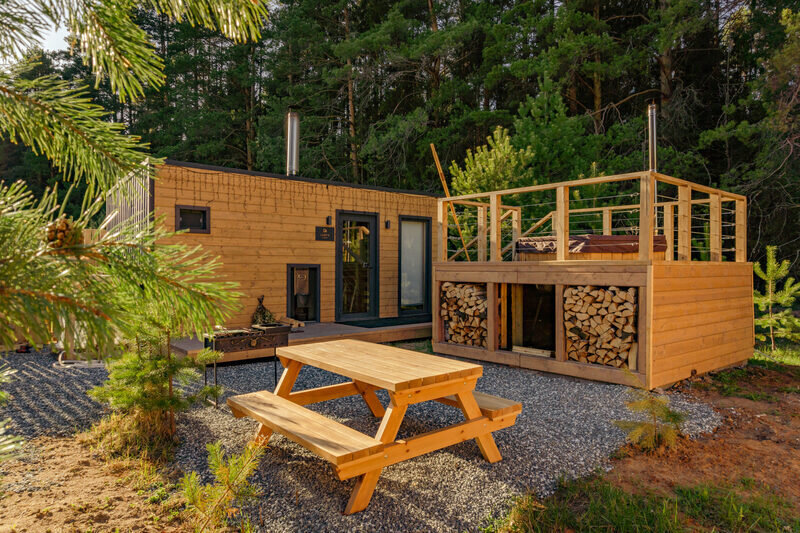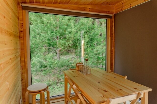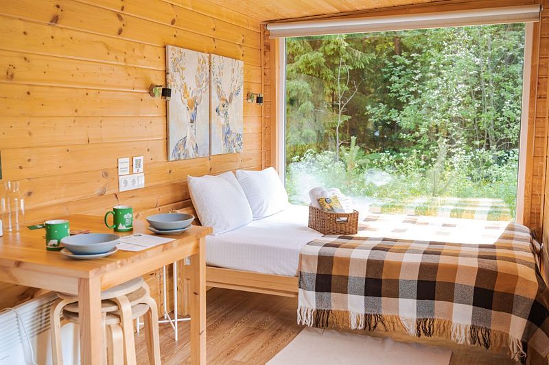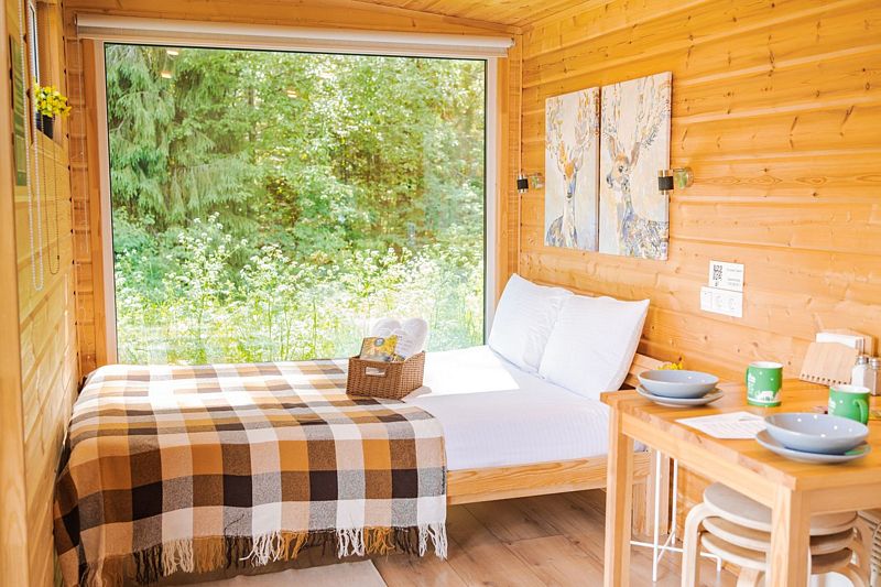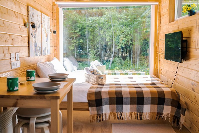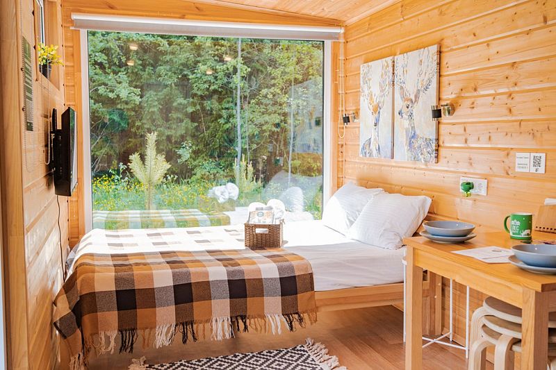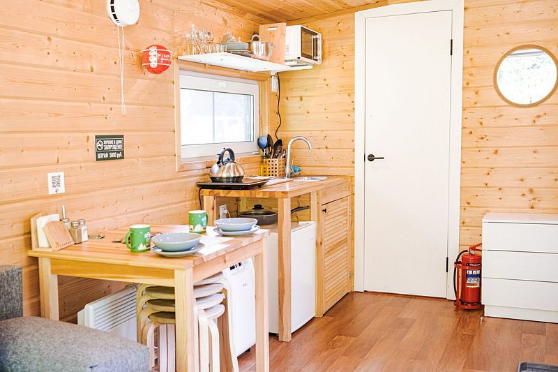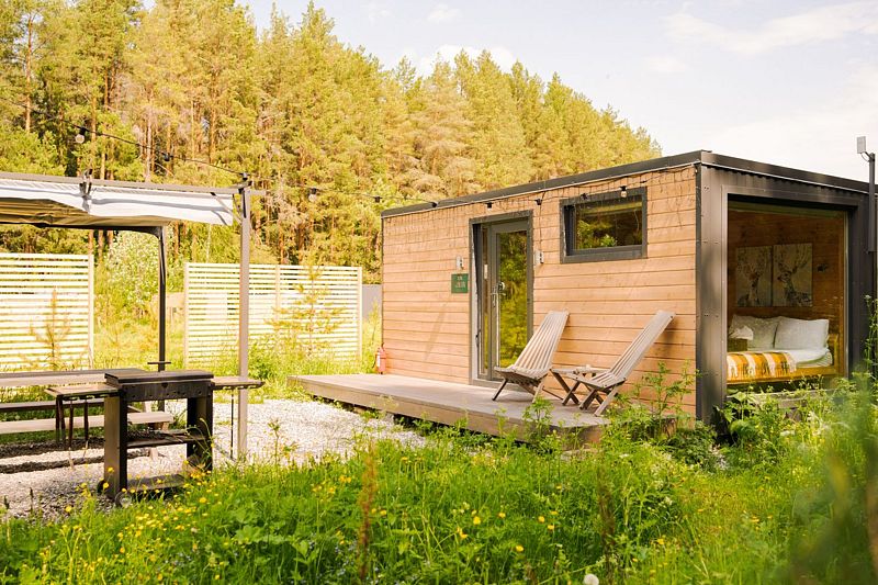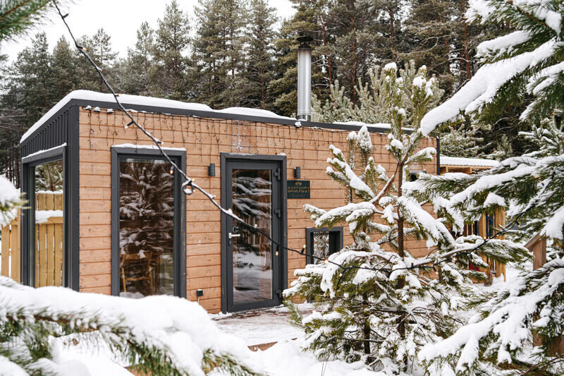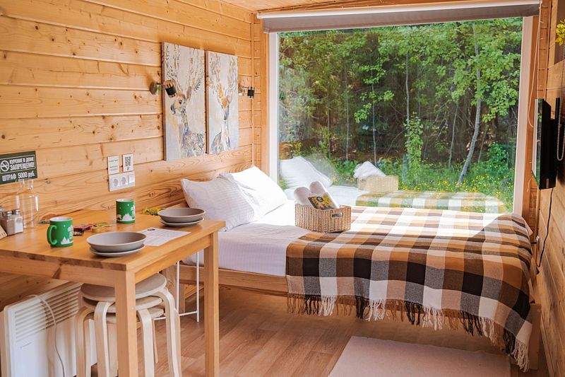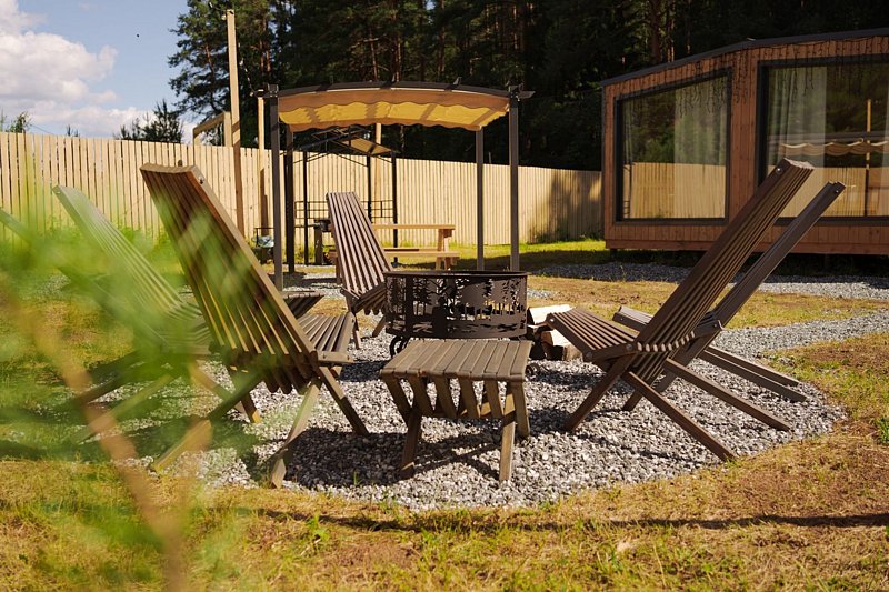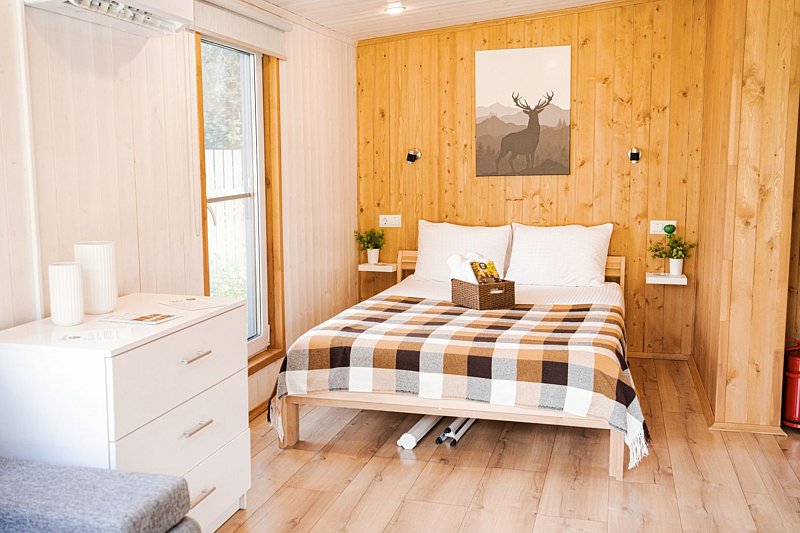 Комфортабельные домики оснащены всем необходимым для приятного отдыха: удобная мебель, современные удобства и возможность наблюдать за окружающей природой через панорамные окна. К услугам отдыхающих также разнообразные развлечения и активности: мангал для пикников, баня, джакузи, фурако и чан, а также прокат велосипедов, квадроциклов и снегоходов. Кроме того, в домиках можно устроить кинопоказы с использованием проектора.