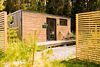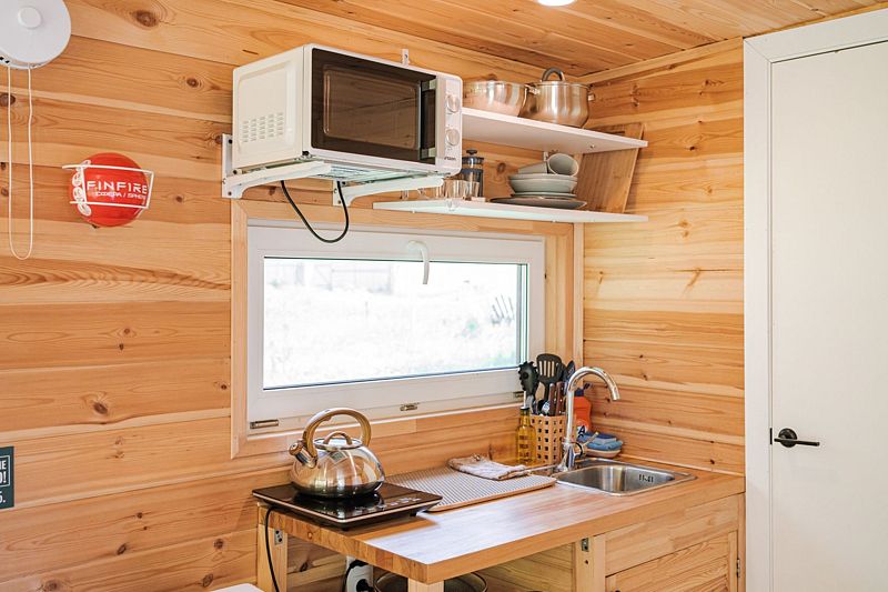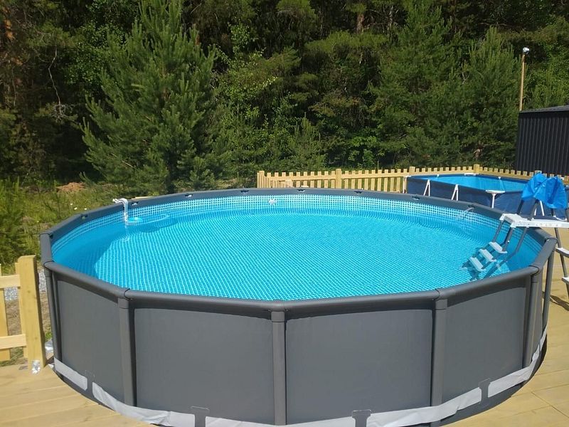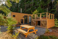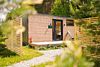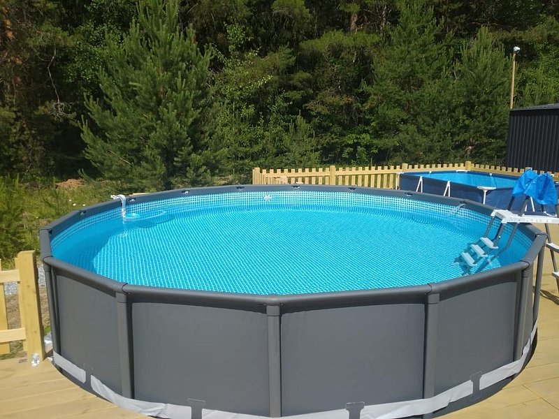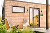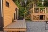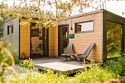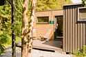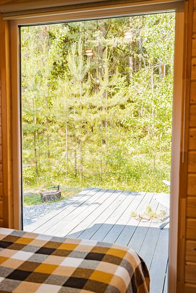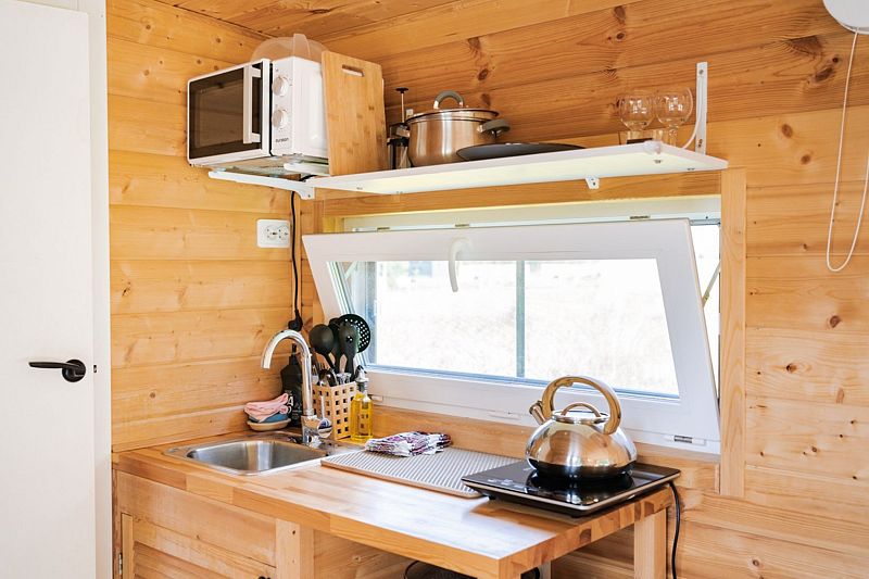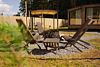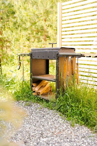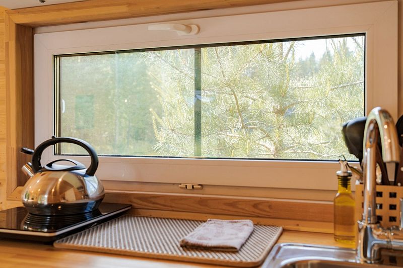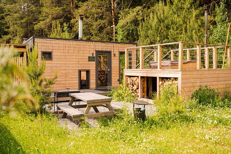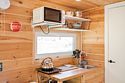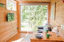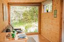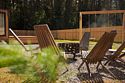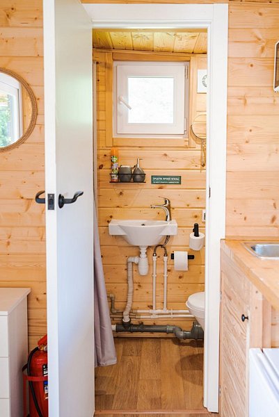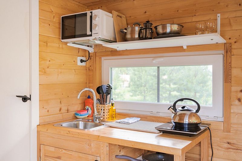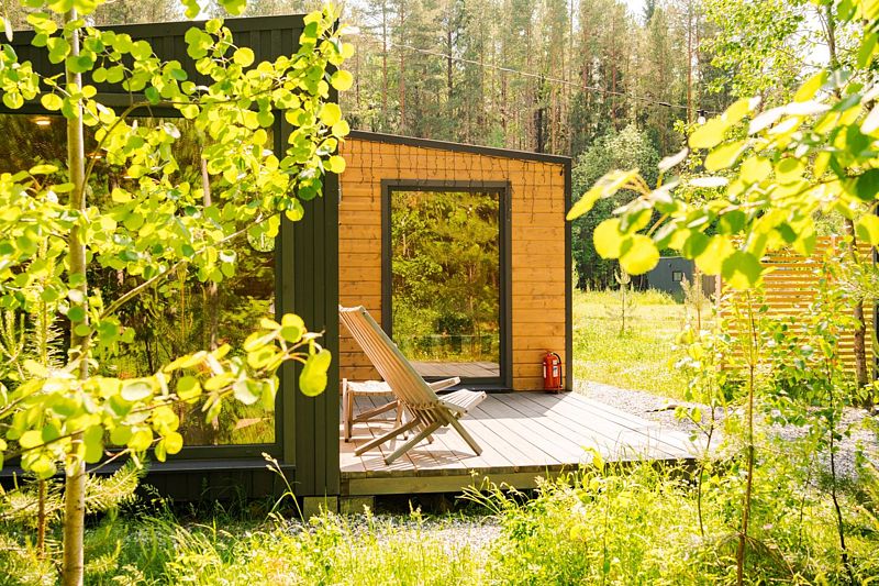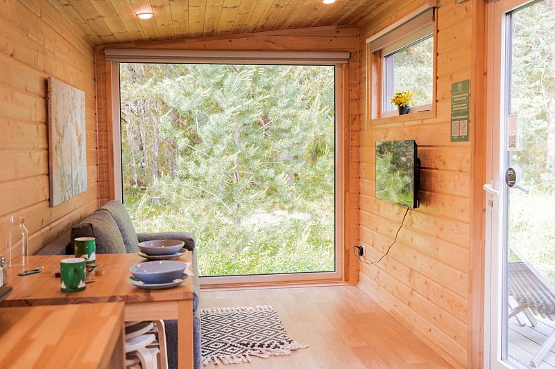 В доме с большим панорамным окном есть двуспальная кровать, кухня, холодильник с мини-баром и санузел с душем, есть терраса с мебелью и все принадлежности для барбекю.