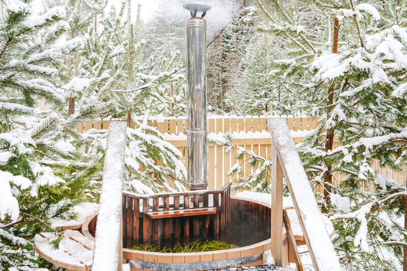 - Первый час греемся в бане, расслабляемся в чане под открытым небом