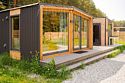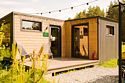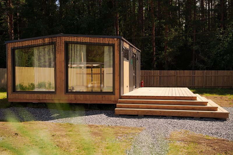 В доме на 4-х человек с большим панорамными окнами есть 2 комнаты: в одной из них находится двуспальная кровать, а в другой раздвижной диван, а также: кухня, холодильник с мини-баром и санузел с душем, есть терраса с мебелью и все принадлежности для барбекю.