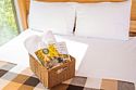 Семейный отдыхДостоинстваМы великолепно отдохнули!) Птички поют, лес, природа. Территория красивая, ухоженная, круто освещается вечерами) У нас был двухместный домик, очень миленький) Всё необходимое есть, чистота, белоснежное постельное бельё, полотенца. Вид из окна чудесный, за ним ещё вернемся не раз 😊Хороший мангал, все принадлежности прилагаются. Беседка, накрывающая на случай дождя. Всё продумано до мелочей. Персонал доброжелательный, сервис отличный. Уже планируем следующую поездку