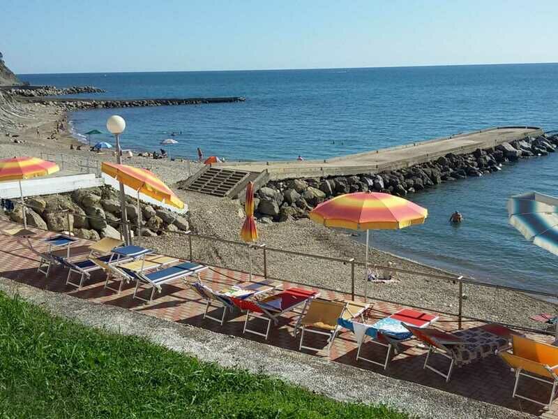 В 250 метрах от комплекса расположился галечный пляж. Поселковый пляж неплохо оборудован — есть раздевалки, навесы, шезлонги, лежаки.