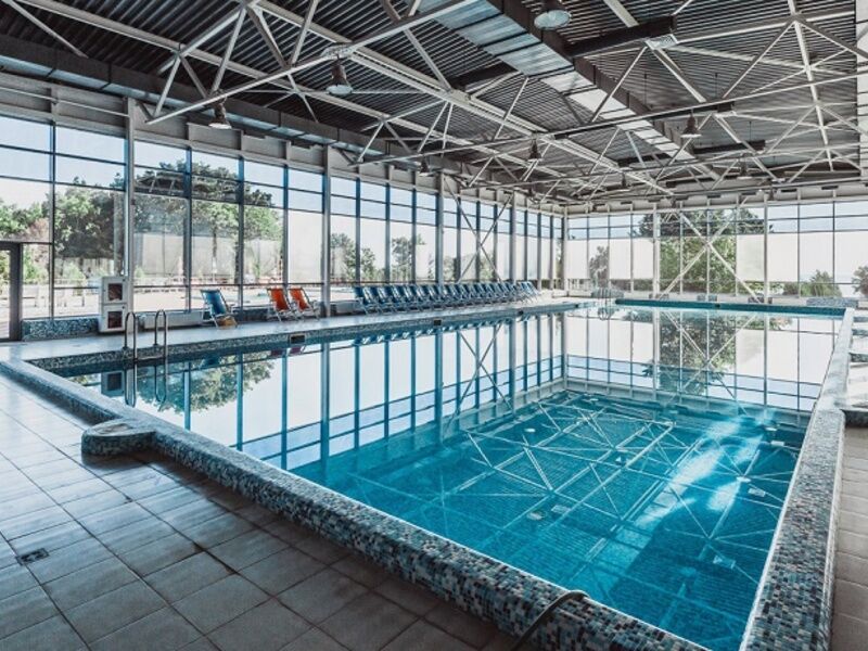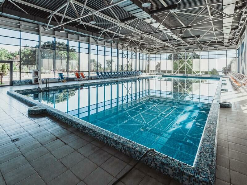 Тип бассейна: крытый бассейнВода в бассейне: подогреваемый бассейнРядом с бассейном: шезлонгиРазмеры: 10 x 25 мГлубина: 150 смВ бассейн допускаются дети с 3-х лет.