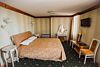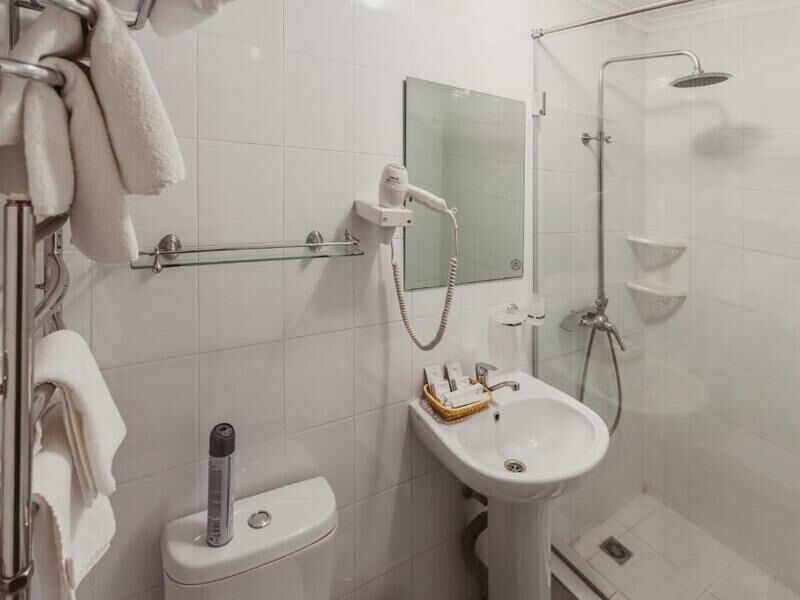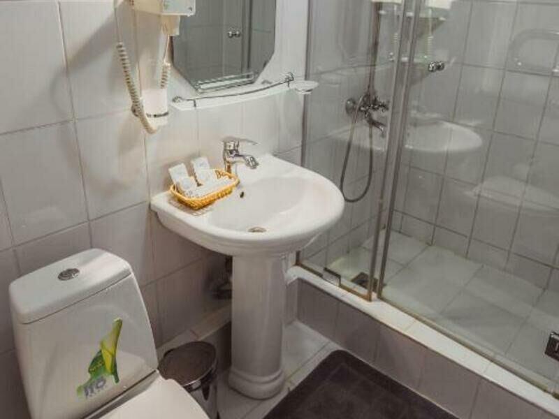 Итак с номера. Маленький , но всё нужное есть - большая удобная кровать , удобные подушки и одеяло отдельно в шкафу, две тумбочки, столик , огромный шкаф с вешалками и полочками , встроенный маленький холодильник , чайник , стаканы , графин, телевизор работал , 10 каналов. Чайные пакетики можно брать в столовой. Отдельно хочу отметить белоснежное и качественное постельное бельё . Балкон у нас был небольшой, со столиком , креслами и сушилкой. Санузел совмещённый, фен есть , розетки , гель для душа и шампунь в пакетиках, мыло в дозаторе. Вот сантехника у нас была не очень, но всё работало. И на удивление не слышно было соседей , это тоже первый раз за всё время наших путешествий.