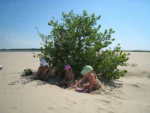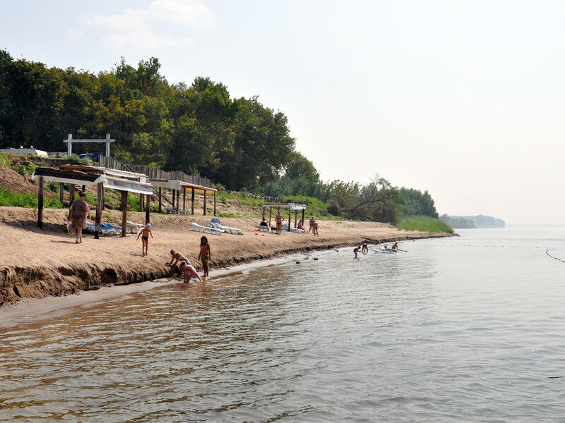 До Волги менее 50-ти метров, приятен и пляжный отдых, есть лежаки, места для пикников.