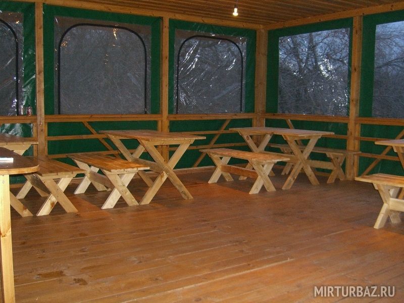 На территории расположено уютное кафе с домашней кухней, где организовано питание гостей клуба.