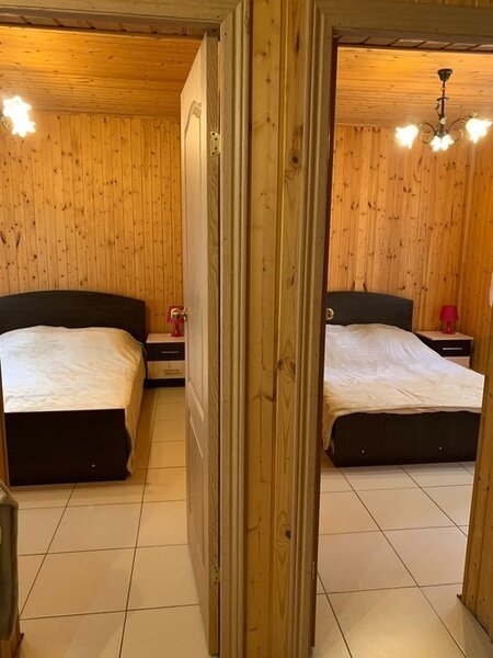 В доме Авиаторе малом две уютные, светлые спальни. В каждой из спален есть двуспальные кровати с прикроватными тумбами, светильники, ТВ (спутник, USB).