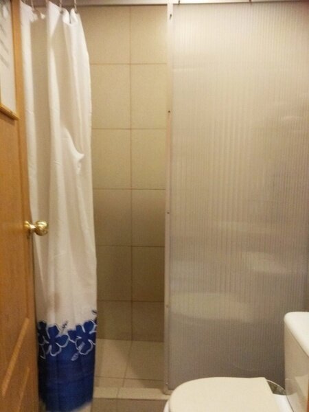 Сан. узел: унитаз, раковина, зеркало, душевая кабина. Выдаются лицевые полотенца.