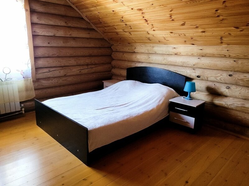 Срубовой двухэтажный коттедж находится в двух минутах ходьбы от реки Волга.