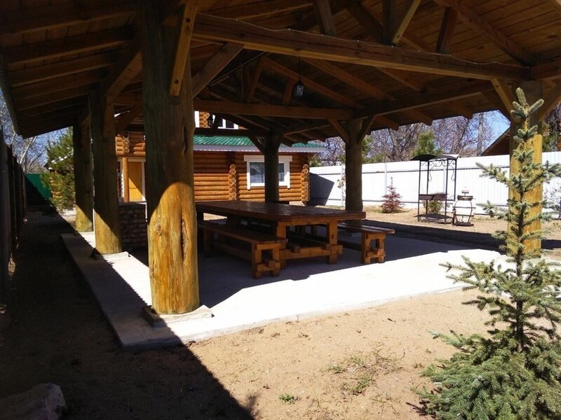 Около коттеджей большие беседки, рассчитанные на 20 человек, с освещением, розеткой, массивным деревянным столом и лавками, разделочным столом.