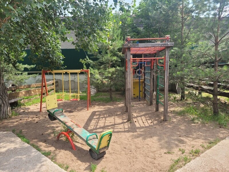 В доме есть открытая небольшая веранда со столом и лавками на шесть человек. На улице, перед домом своя огороженная территория с мангальной зоной, зеленые насаждения. На территории комплекса футбольная и волейбольная площадка, детская игровая площадка.