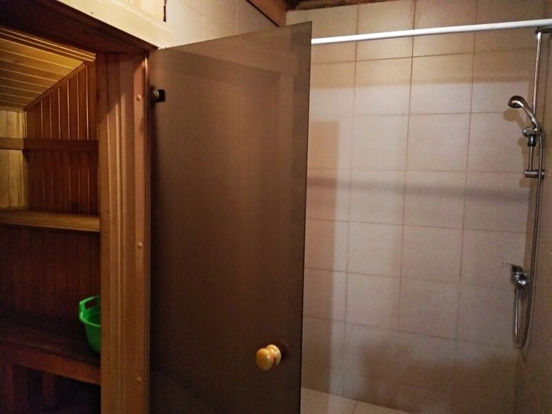 На первом этаже расположена уютная сауна с отдельной душевой зоной. Выдаются лицевые полотенца.