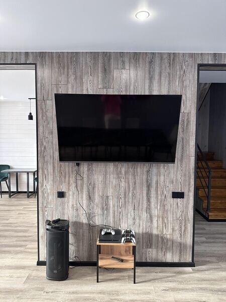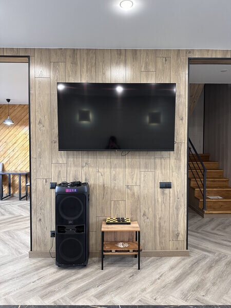 Для развлечений в доме предусмотрены игровая консоль PS4 и караоке-система с мощной акустикой Party Box. Гости смогут уединиться, насладиться природой, попариться в бане и устроить вечер караоке.