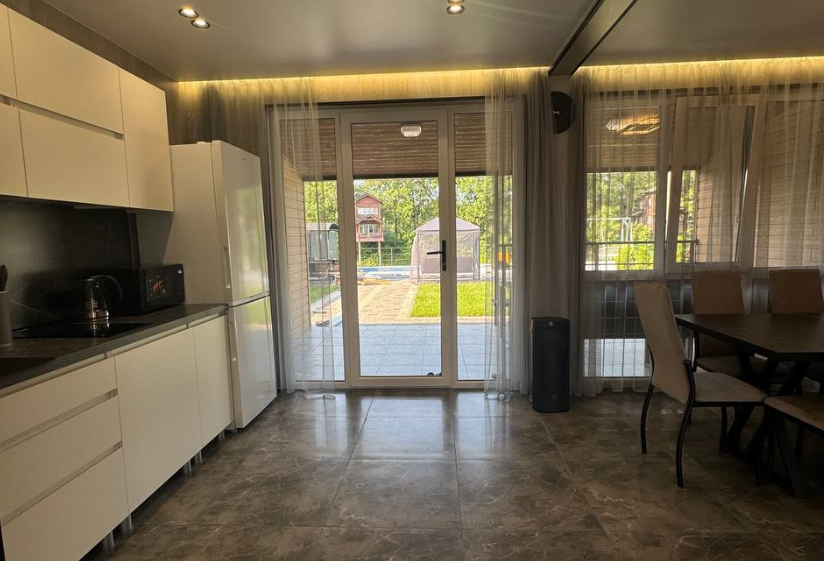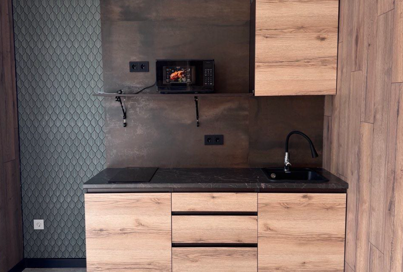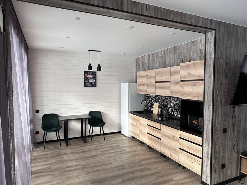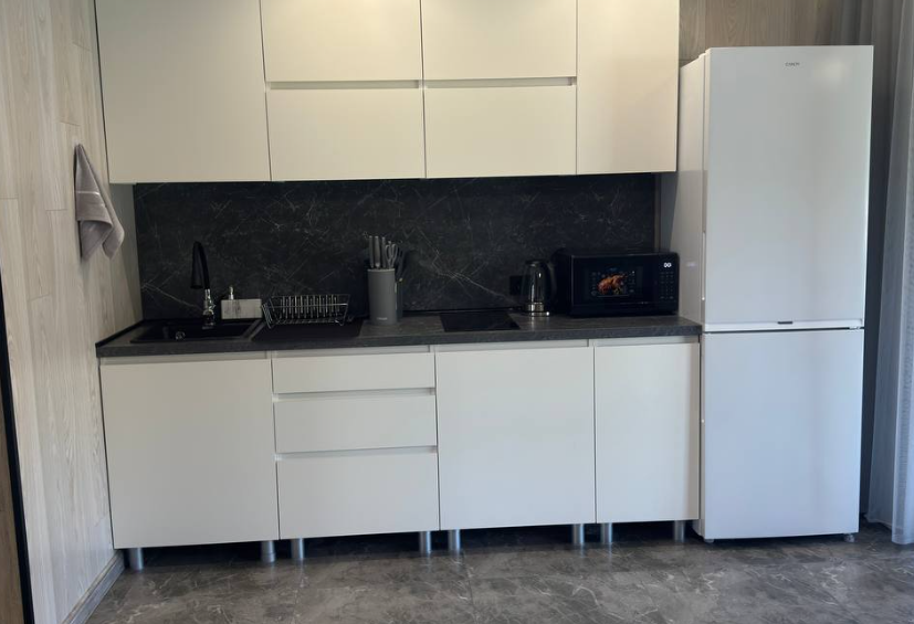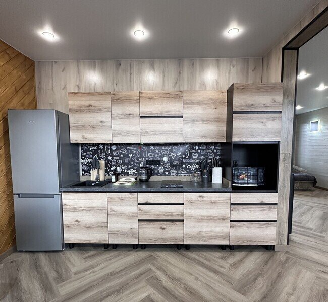 Кухня оборудована современной бытовой техникой и мощной системой фильтрации, поэтому нет необходимости привозить с собой питьевую воду.