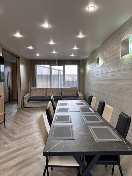 Семейный отдыхДостоинстваЧудесное место для большой семьи или компании друзей. Правда только если вы привыкли к размеренному отдыху. Для разбитной вечеринки не подойдёт, т.к. после 23 часов действует режим тишины)) Нас было 8 человек, все разместились комфортно. Есть большой обеденный стол, не нужно ждать своей очереди, чтобы покушать)) Всем хватило места. На кухне есть все, вплоть до приправ) В ванной был шампунь, гель для душа и даже ватные палочки и диски. Фен тоже предусмотрели. Вот это я понимаю сервис))