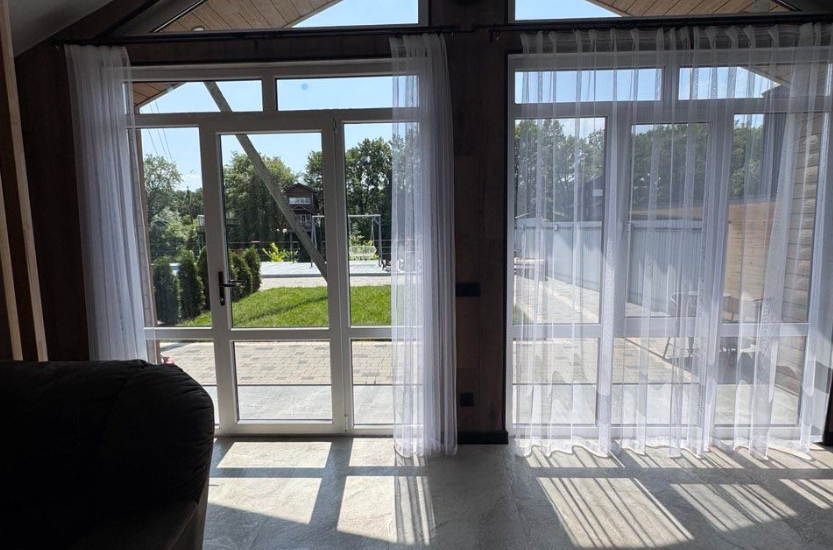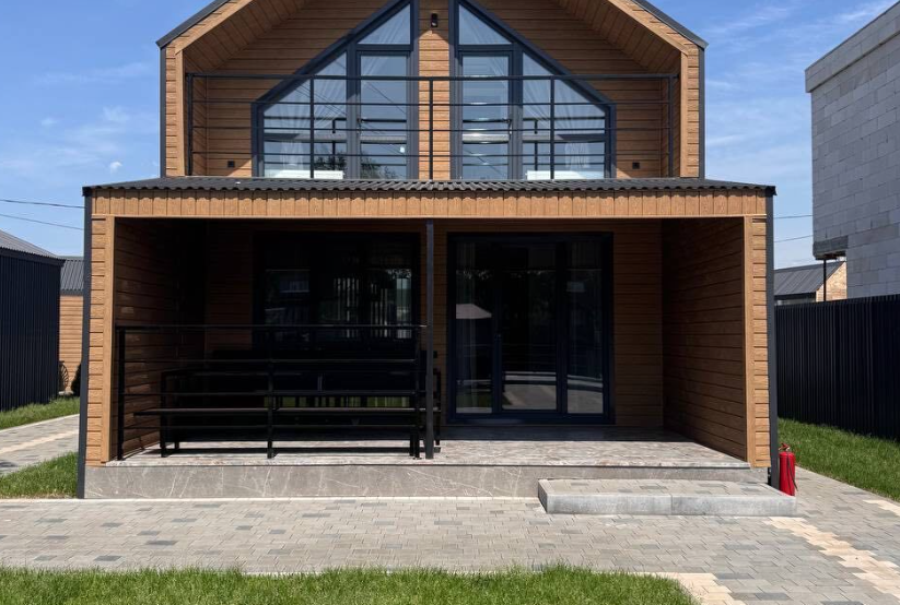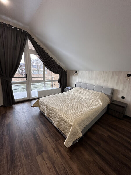 Внутри гостей ждут 4 просторные спальни с панорамными окнами, открывающими живописные виды на окружающий ландшафт. Два современных санузла обеспечат комфорт и уединение. На террасе оборудована зона для барбекю, где можно собираться всей компанией.