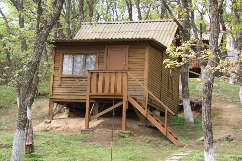 Деревянные домики на 4-5 человек, с отдельной спальной комнатой и кухней. Санузел на улице.
