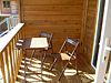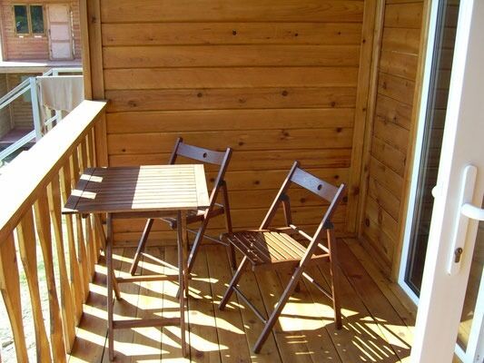 Комната, 12 кв. м, в которой расположены: раскладной двуспальный диван, двуспальная кровать, холодильник, телевизор (3 канала), термос, место для размещения одежды (крючки), комод, зеркало, стол и 2 стула; санузел – туалет, душевая кабина (горячая вода-бойлер), умывальник, зеркало, полотенцедержатель, этажерка для размещения вещей. Из витражного окна открывается вид на море. Жалюзи. Розетки в номерах. Веранда, 12 кв. м, на 2 комнаты: набор уличной мебели (стол и 2 стула).