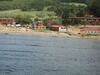 Читать полностью400 метров. Морской песок. До 100 м мелководье, глубина до 1,8 м. Есть трава.