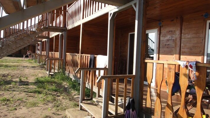 Не для семейного размещения, только койко-место. В комнатах имеются крючки для одежды. Общая веранда имеет стол и 4 стула. Прекрасный вид на море, светящийся пирс, флот клуба и всю базу.