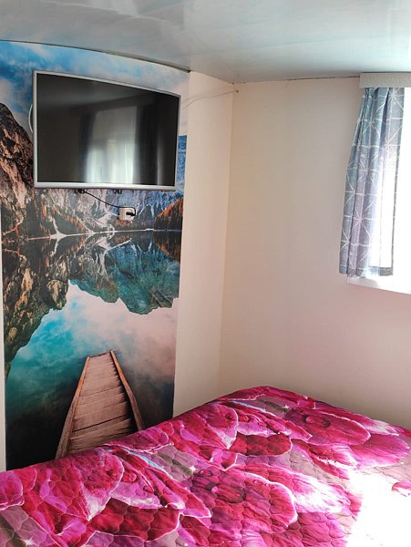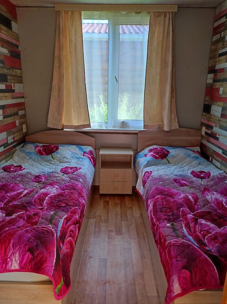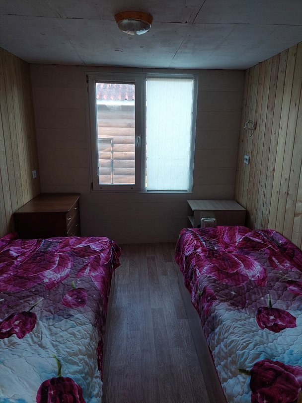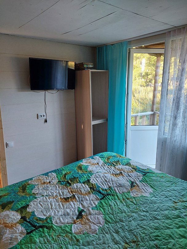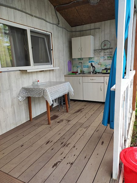 На 1 этаже — большая кухня с верандой. На 2 этаже — 3 отдельные комнаты. В каждой комнате: кровати, телевизор, душ и туалет.