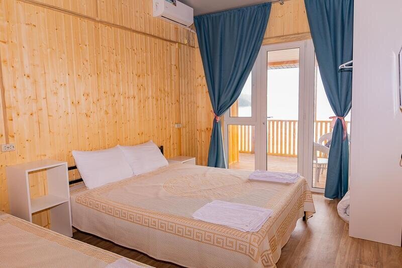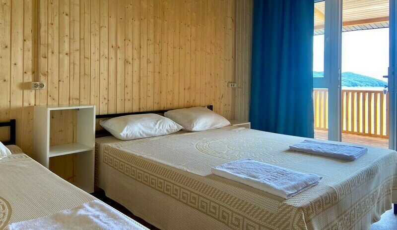 Уютные 3х местные номера с верандочкой на первом этаже (номер 1, 2, 7й), и с общим балконом на втором этаже (8, 9, 13й), в них есть все необходимое. Каждый номер с видом на море, что наполнит ваш отдых вечерами с волшебными видами с вашего балкончика.