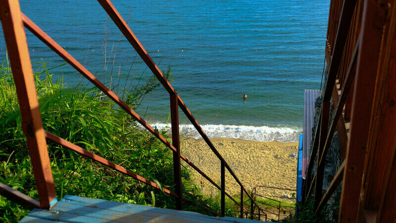 Расстояние до моря всего 2 минуты, пройти в обход гостевого дома Парус и спуститься на пляж.