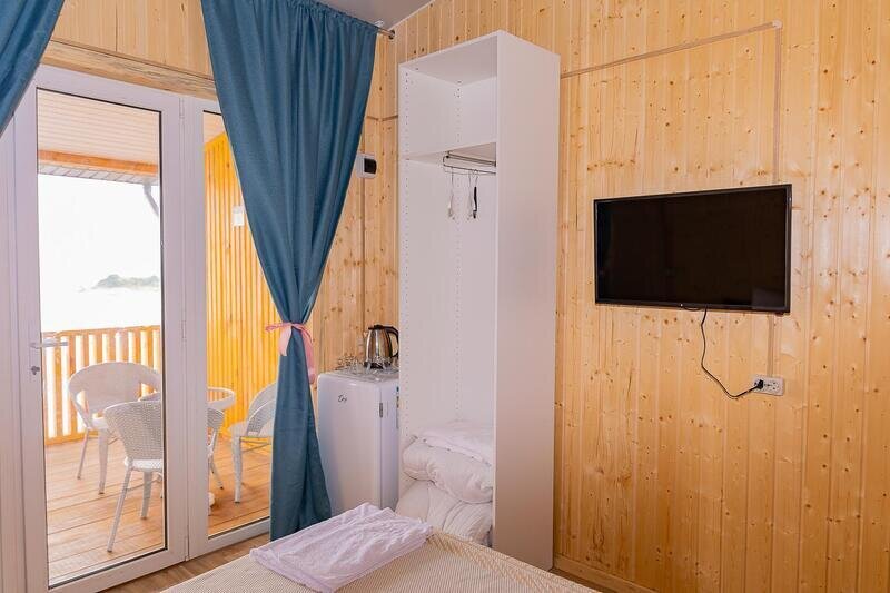 Семейный отдыхДостоинстваБаза просто замечательная. Номер комфортный - есть душ, телевизор, туалет, а главное - потрясающий вид на море! Пляж песчаный, море рядышком, и все магазины в шаговой доступности. Обязательно приедем еще раз!