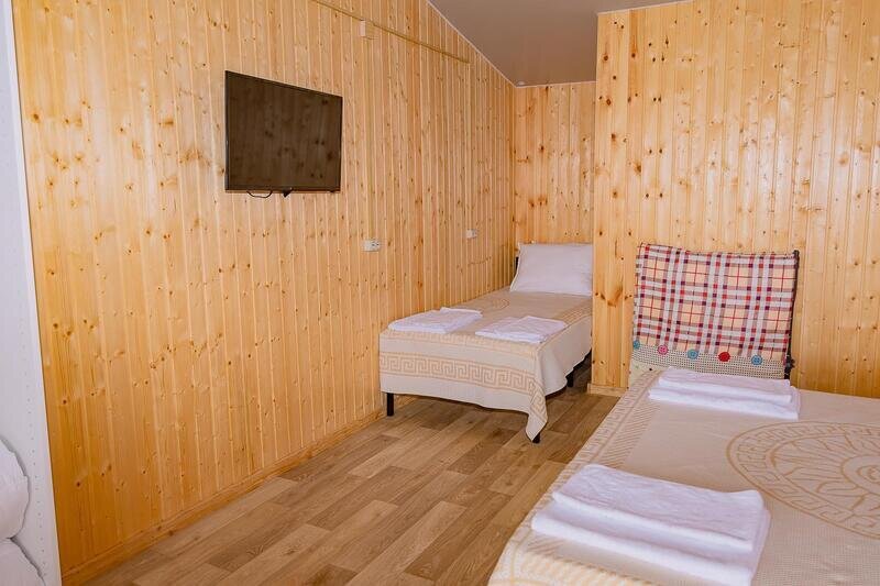 Уютные 2х местные номера с верандочкой на первом этаже (номера с 4-6й), и с общим балконом на втором этаже (11, 12, 13й), в них есть все необходимое. Каждый номер с видом на море, что наполнит ваш отдых вечерами с волшебными видами с вашего балкончика.