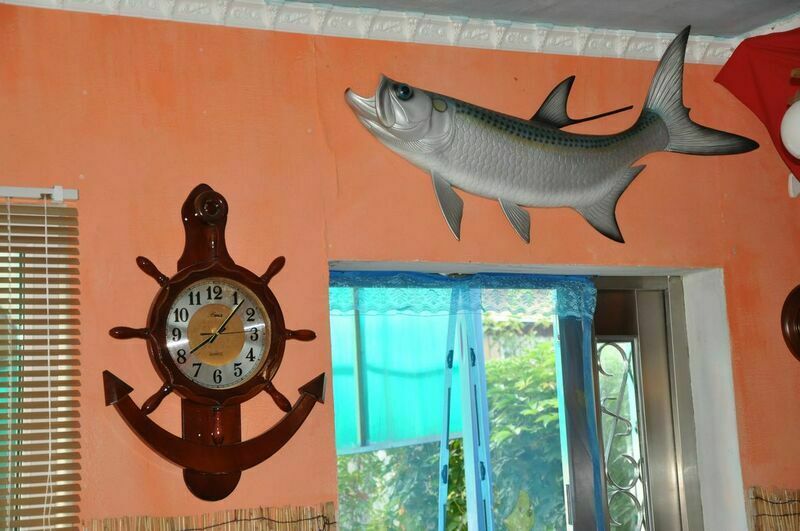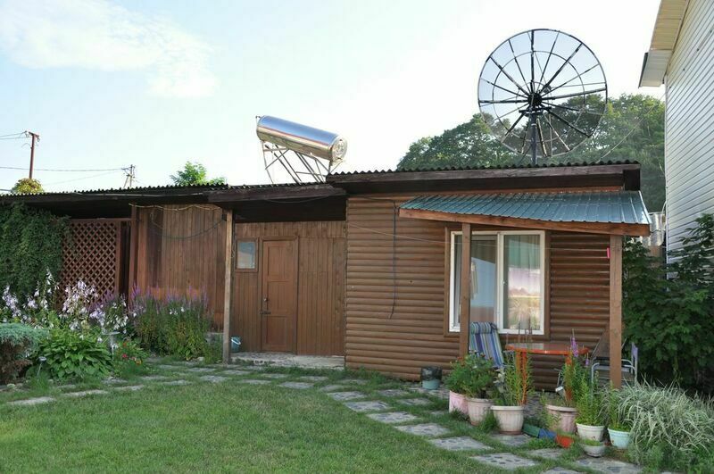 В номере: диван и 2 односпальные кровати,прикроватные тумбочки, телевизор, шкаф, холодильник, TV тюнер, стол, стулья. На террасах прилегающих к каждому номеру имеются столики со стульями. Санузел в каждом номере . Холодная и горячая вода в каждом номере (бойлер).