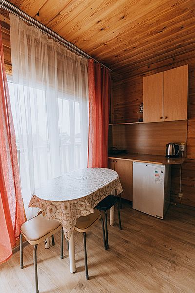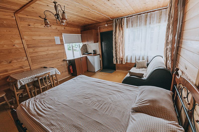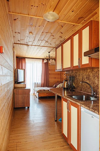 Уютные, комфортабельные однокомнатные номера, предназначенные для размещения двух или четырех человек, состоящие из спальной комнаты и небольшой кухонной зоны. Общая площадь номера составляет 18 м. кв. Уборка номеров проводится самостоятельно.