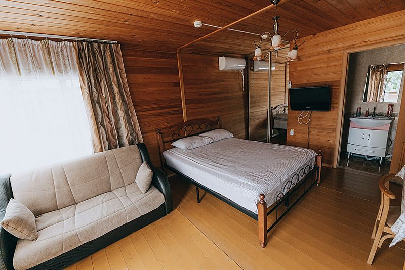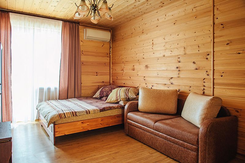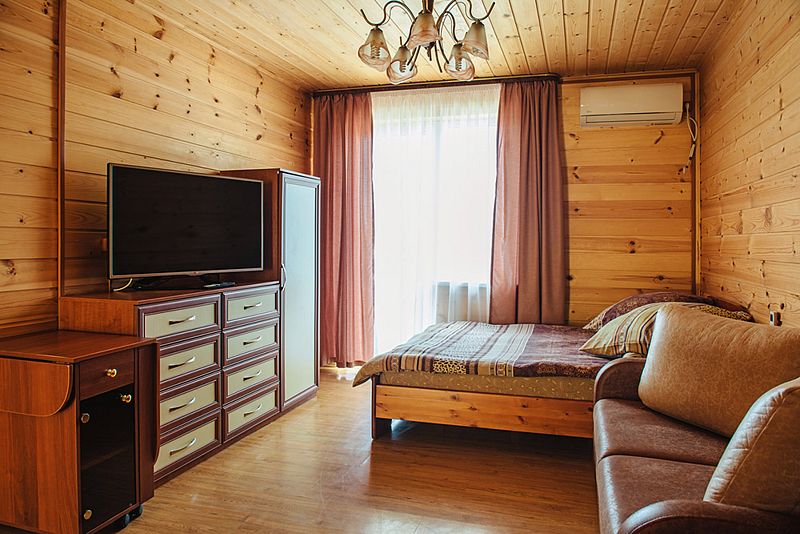 На территории базы отдыха располагаются 7 индивидуальных домов повышенной комфортности. Дома имеют большую комнату 18 м. кв. и свой санитарный узел. Каждый дом облицован системой навесного вентилируемого фасада, внутренняя отделка домов выполнена из натурального кедра.