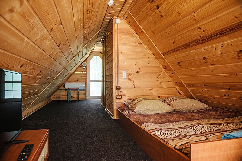 Недостаткикрайне нелюбезный персонал, с вопросами и проблемами обращаться бесполезно, давно не встречала таких персонажей в сфере обслуживания, номер под крышей прикольный, но унитаз не закреплен, кресло на балконе сломано, постельное белье в пятнах. ванна с желтым налетом, ведро для мусора также поломано. База расположена не в самом поселке, магазин на ее территории не работал