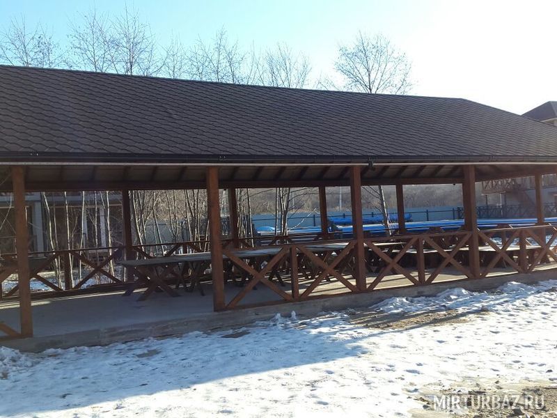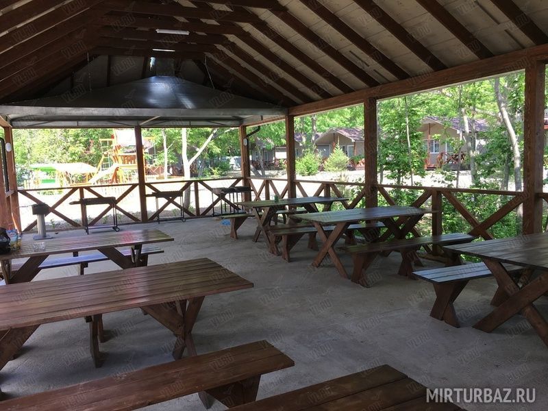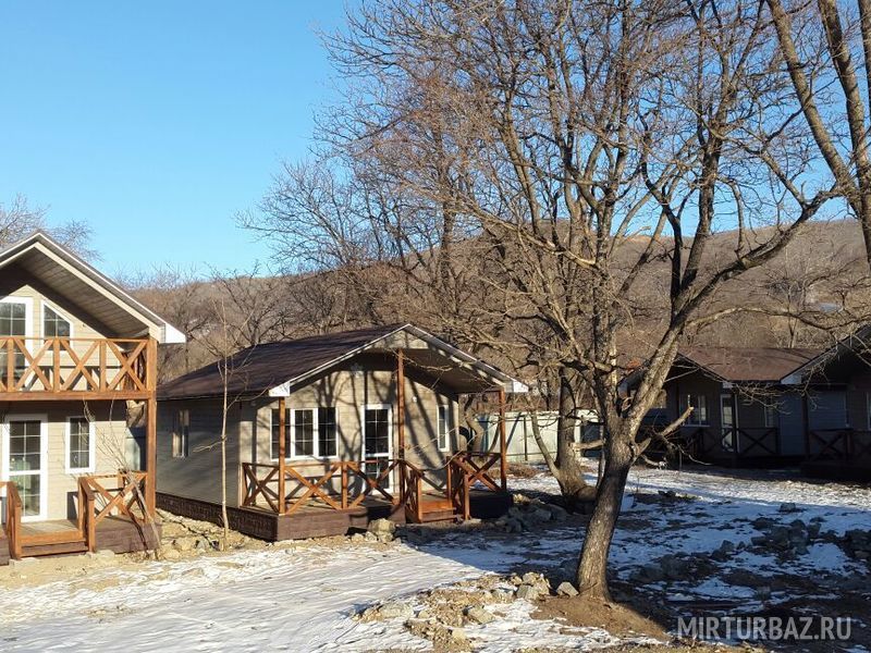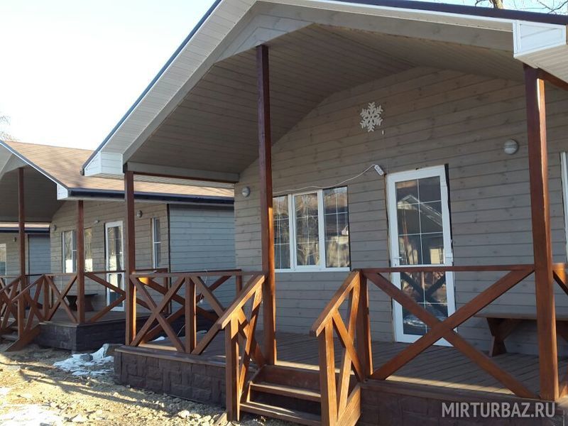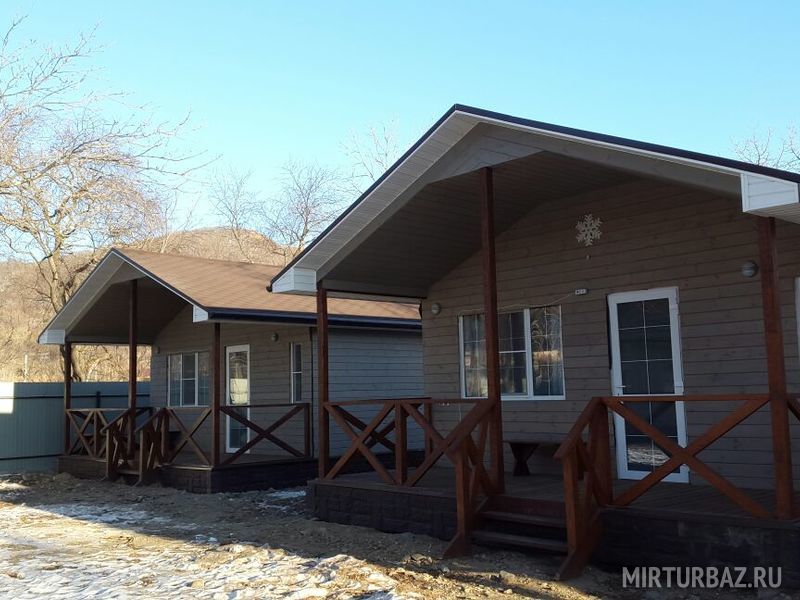 Для проживания на базе отдыха предоставляются 5 одноэтажных домиков.