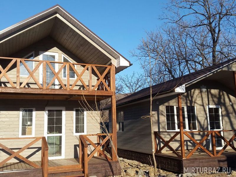 Для проживания на базе отдыха предоставляются 2 двухэтажных домика.
