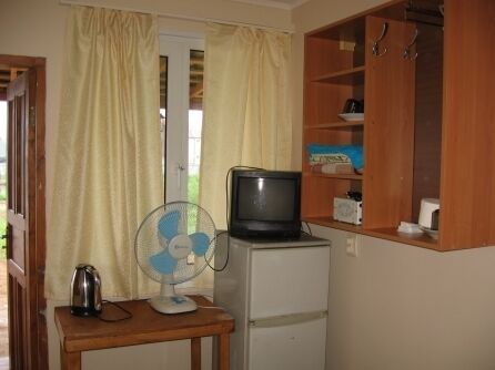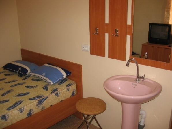 Кровати с ортопедическими матрацами, минихолодильник, телевизор, умывальник, столик с табуретами, навесной шкаф-прихожка, вешалка, вентилятор, электрочайник, горячий душ.