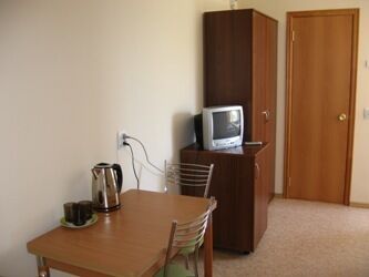Кровати с ортопедическими матрацами, минихолодильник, телевизор, умывальник, столик с табуретами, навесной шкаф-прихожка, вешалка, вентилятор, электрочайник.