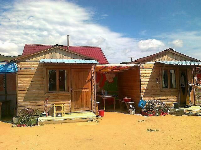 В домах спальные места (по количеству проживающих), электричество, телевизор и холодильник. Посуда, белье и чайник выдаются.