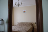 Двухместный номер класса Люкс. Витражные окна и балкон площадью 12 кв.м. позволяют гостям в течении дня наслаждаться прекрасным видом на море и пляж, а так же вечерами наблюдать закат солнца. В номере находятся холодильник, сейф, шкаф-купе, два телевизора ( в гостиной и спальне).