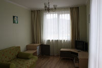 Двухместный номер с балконом. Номер укомплектован одной двуспальной (двумя односпальными) кроватью, двумя прикроватными тумбочками, письменным столом, двумя креслами, журнальным столиком, телевизором, холодильником, чайником и набором чайной посуды, сейфом, прихожей, шкафом-купе и зеркалом.