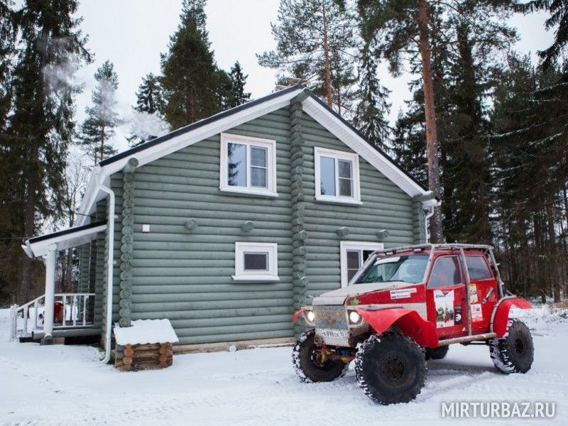 ДостоинстваДомик нам достался новый, в нем пять спален, одноместные кровати добротные и прочные. Некоторые санузлы с душем. В кухне-гостиной стоит большая старинная печка, ее можно отапливать дровами в холодное время года. В номерах стоят мягкие диваны. На территории можно взять напрокат квадроцикл и покататься на озере, а также помыться в бане и попариться в сауне. Всего в 30 км находится крупный город Петрозаводск.