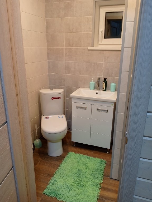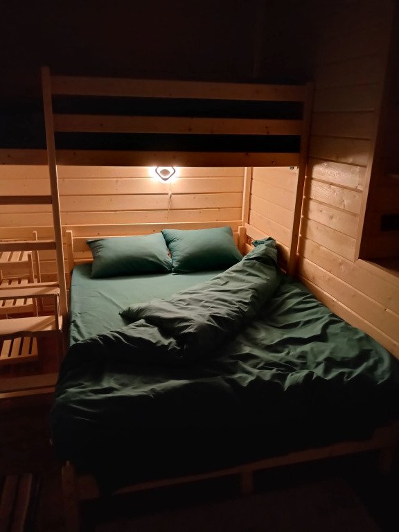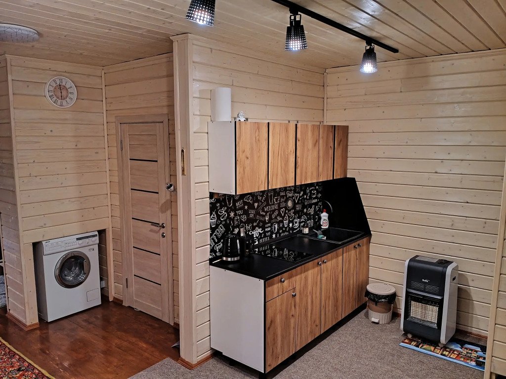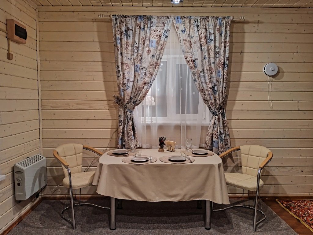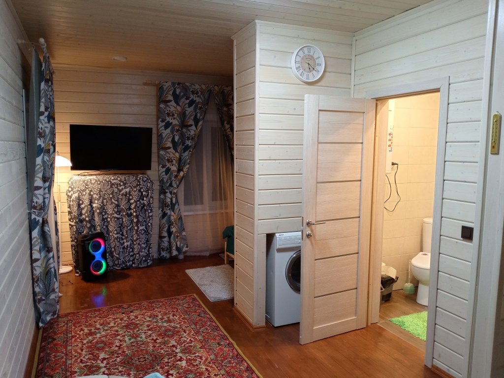 В доме в распоряжении гостей: один этаж, спальная комната, санузел с душем, кухня-студия и терраса. Гости могут разместиться на следующих спальных местах: двуспальная кровать, одноместная кровать-чердак, раскладушка. На территории есть баня на дровах с комнатой отдыха, парилка и моечное отделения раздельны. Гости могут самостоятельно затопить баню или обратиться к представителю частного дома.