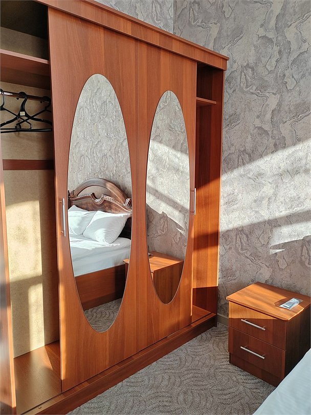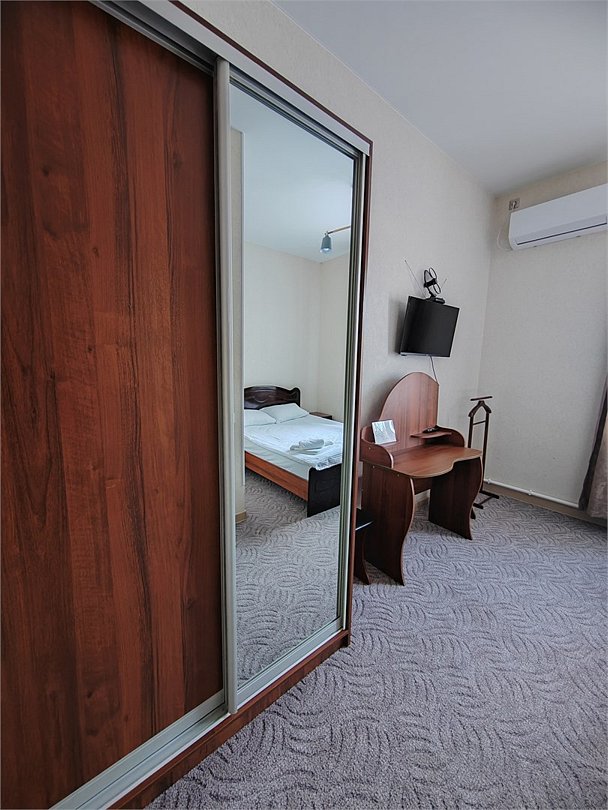 Wi-Fi, кондиционер, фен, будильник, ванная комната, санузел, тапочки, косметические средства, двуспальная кровать, гладильная доска, ортопедический матрас, диван, кресла, стулья, шкаф для одежды, вешалки, журнальный столик, обеденный стол, зеркало, комод, мебельный гарнитур, раковина, двухъярусные кровати, ковровое покрытие, отопление, душ, кулер на этаже, кресло, вид во двор, стул, стол, тумба, туалетный столик, туалетные средства, туалет, панорамные окна, цифровое тв, диван-кровать, раскладной диван, мини-холодильник, шкаф-купе, гостиничная парфюмерия, номер для некурящих, вид на бассейн, пуфик, общественный бассейн, фумигатор, двуспальный раскладной диван-кровать, услуги прачечной (платно), вешалки-плечики, мыло, без питомцевВ номере