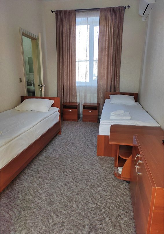Wi-Fi, кондиционер, будильник, водонагреватель, тапочки, две односпальные кровати, гладильная доска, стулья, шкаф для одежды, вешалки, журнальный столик, обеденный стол, зеркало, комод, унитаз, раковина, ковровое покрытие, отопление, душ, кулер на этаже, кресло, вид во двор, высокие потолки, туалетный столик, стул, стол, туалетные средства, туалет, цифровое тв, телевизор с плоским экраном, шкаф-купе, гостиничная парфюмерия, номер для некурящих, вид на бассейн, фумигатор, уборка номера, услуги прачечной (платно), вешалки-плечики, без питомцевВ номере